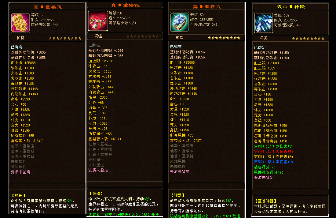 - 古墓四层:5W赠点票,修仙金丹,爵帥套装,200点药尘,功力丹,顶级龙纹武魂升级材料,驱魔令牌(半小时刷新)